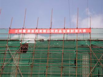 2010年7月17日上午,在一片鞭炮齊鳴的喜慶氣氛中,三明鷺燕醫(yī)藥有限公司在三明現(xiàn)代城市物流園區(qū)內(nèi)舉辦了物流中心項(xiàng)目"封頂大吉"的慶典儀式。