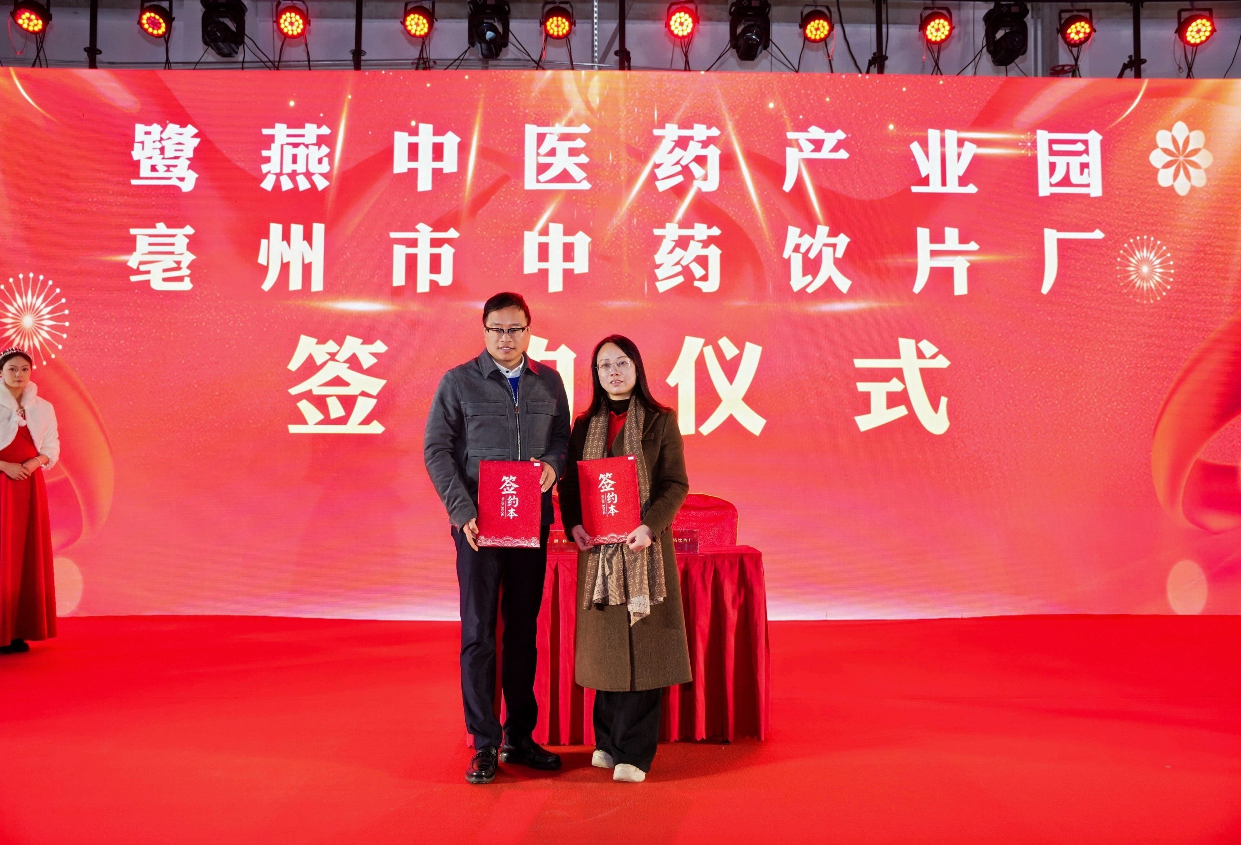 慶典會場紅綢高懸、花團錦簇,嘉賓席位井然有序。喜慶氛圍中,一場見證鷺燕中醫藥產業新紀元的儀式即將啟幕。